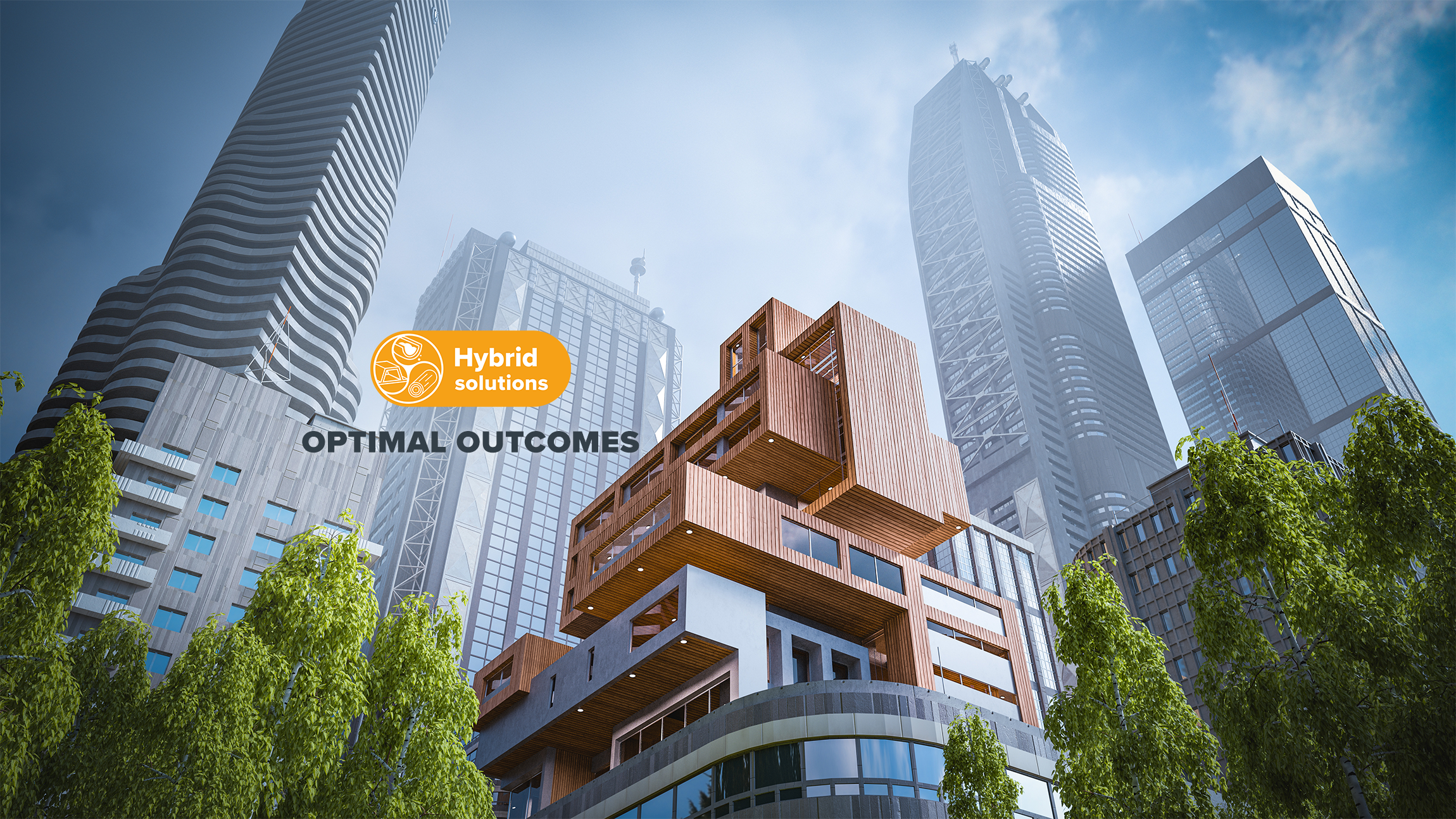 Hybrid structures are a current trend in the building industry that greatly increase the sustainability. Building with hybrid structures means in general combining different materials, such as wood, concrete or steel to generate new properties that cannot be achieved by usage of the individual materials itself. For us in Peikko hybrid structures means more than that. When using hybrid structures, buildings of all types and usages can be built very quickly and flexibly. The same can be achieved with prefabricated systems used for slim floor structures. By combining hybrid and slim floor structures, not only the CO2 emissions will be lower, because materials that accommodate low emissions such as wood are used, even the building height can be reduced and as a result the heating and cooling costs will be lower. In addition, such structures can be demounted again, when the lifecycle of a building ends and reused in the same or a different function. These are just a few aspects and advantages of hybrid slim floor structures that will be examined in more detail below.